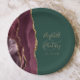 Agate Geode Script Burgundy Gold Green Paper Plate