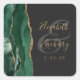 Agate Geode Script Emerald Green Gold Dark Wedding Square Sticker