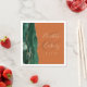 These elegant modern wedding napkins feature an emerald green watercolor design trimmed with faux gold glitter. Easily customise the gold-coloured text on a burnt orange or rust background, with the names of the bride and groom in handwriting calligraphy over a large ampersand.