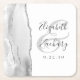 This elegant modern wedding coaster features a grey and white watercolor agate geode design trimmed with faux silver glitter. Easily customise the charcoal grey text on a white background, with the names of the bride and groom in handwriting calligraphy over a large, light grey ampersand.