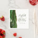 These elegant modern wedding napkins feature a hunter green watercolor design trimmed with faux gold glitter. Easily customise the charcoal grey text on a white background, with the names of the bride and groom in handwriting calligraphy over a large pale green ampersand.