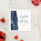 These elegant modern wedding napkins feature a navy blue watercolor design trimmed with faux silver glitter. Easily customise the charcoal grey text on a white background, with the names of the bride and groom in handwriting calligraphy over a large, pale blue ampersand.