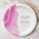 Agate Geode Script Pink Silver Wedding Paper Plate
