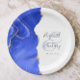Agate Geode Script Royal Blue Gold Wedding Paper Plate