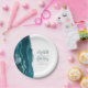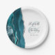 Agate Geode Script Teal Silver Wedding Paper Plate