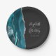 Agate Geode Silver Script Dark Wedding Paper Plate