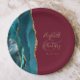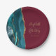 Agate Geode Teal Gold Burgundy Wedding Paper Plate