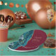 These elegant modern wedding plates feature a teal watercolor design trimmed with faux gold glitter. Easily customise the gold-coloured text on a burgundy red background, with the names of the bride and groom in handwriting calligraphy over a large ampersand.