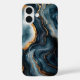 iPhone 16 case featuring a stunning agate geode design with deep navy blue and shimmering gold marble accents, adding a touch of luxury and elegance to your device.