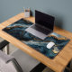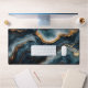 Desk mat featuring a luxurious agate geode design with deep navy blue and shimmering gold marble accents, perfect for bringing elegance and style to your workspace.