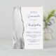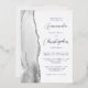 The left-hand edge of this elegant modern wedding invitation features a grey watercolor agate border trimmed with faux silver glitter. The customisable text combines script and sans serif fonts in real silver foil on a white background. The reverse side features a matching agate design.