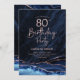 Agate Navy Blue Rose Gold 80th Birthday Invitation