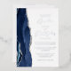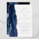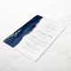 The left-hand edge of this elegant modern wedding invitation features a navy blue watercolor agate border trimmed with faux silver glitter. The customizable text combines script and sans serif fonts in real silver foil on a white background. The reverse side features a matching agate design.