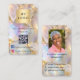 A pinl, rose gold, faux gold opal, agate stone print as background. Personalise and add your business logo,photo, name, title and contact information. Add your website url/link to the Qr code. With Facebook and Instagram icons. Black text.