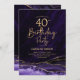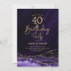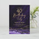 Purple and gold agate 40th birthday party invitation. Elegant modern design featuring watercolor agate marble geode background, faux glitter gold and typography script font. Trendy invite card perfect for a stylish women's bday celebration. Printed Zazzle invitations or instant download digital printable template.