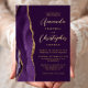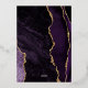 The left-hand edge of this elegant modern wedding invitation features a purple watercolor agate border trimmed with faux gold glitter. The customisable text combines script and sans serif fonts in real gold foil on a plum background. The reverse side features a matching agate design.