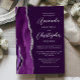 The left-hand edge of this elegant modern wedding invitation features a purple watercolor agate border trimmed with faux silver glitter. The customisable text combines script and sans serif fonts in real silver foil on a plum background. The reverse side features a matching agate design.