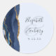 Agate Script Navy Pale Blue Gold Wedding Classic Round Sticker