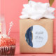 This elegant modern wedding sticker features a navy blue watercolor agate geode design trimmed with faux gold glitter. Easily customize the charcoal gray text on a pale blue background, with the names of the bride and groom in handwriting calligraphy over a large ampersand.
