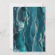 The left-hand edge of this elegant modern wedding invitation features a teal blue watercolor agate border trimmed with faux rose gold glitter. The customizable text combines script and sans serif fonts in charcoal gray on a white background. The reverse side features a matching teal and rose gold agate design.