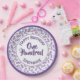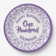 Age 100 Scattered Number Pattern Purple/White Paper Plate