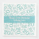 This modern numerical design is a teal and white random number pattern with the teal milestone number 20 repeated in varied sizes and angles over a white background. The teal banner in the centre has three lines of text: "Happy 20th Birthday," your name, and your birth date. Each line has a text template so you can easily personalise it.