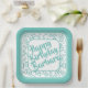 Age 50 Random Number Pattern Teal/White Paper Plate