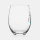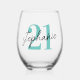 Personalised birthday stemless wineglass featuring the persons age in a teal blue, which can be changed to any colour, and their name in a elegant script font.