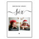 Black and white script wedding Table Number card "When we were age" with photo of groom and bride.