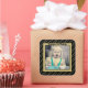 This number pattern is printed with your age repeated in gold diagonal rows over a black background creating the picture frame. The "Happy Birthday" is printed above the image; the name and date are below it.