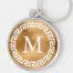 A faux aged gold foil digital art graphic background with a white round Greek key border for your monogram.