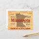 Aged antique paper Minnesota state pride image including map silhouette with cities, towns and nickname.