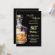 A modern birthday party invitation with bold numbers, a bottle of whiskey and a glass of whiskey. Customize the details for a unique and cool birthday celebration.