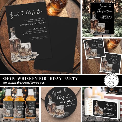 Aged To Perfection Whiskey Men's Birthday Party Liquor Bottle Label