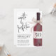 Aged To Perfection Red Wine 50th Birthday Invitation. Celebrate fifty in style with this elegant and slightly playful design. The front features a deep red watercolor wine bottle topped with a crisp white bow for a chic touch. The bottle includes a spot to display the age, making it perfect for any milestone birthday from 21 and up. A mix of handwritten script calligraphy and classic serif fonts in dark grey creates a modern, polished look.