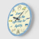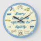 Agility obstacles for every time. This dog agility clock is perfect for your club or a judge's gift. Eleven dog agility obstacles and a paw print are the clock "numbers", "Every time is the right time for agility" text in the centre. The centre background is pale yellow, the outside edge is textured medium blue.