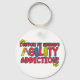 I support my husband's Agility Addiction! Fun dog agility gifts for the wife. Red print outlined in blue. The word "Agility" is made up of an orange a-frame and two colourful tunnels. Funny design is perfect for agility trials.