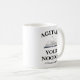 Mug featuring a funny design containing an open book and stars and text saying "Agitate Your Noodle, Read a Book", as in giving the brain a workout. The text and the colour of the design can be changed using the "Edit this design" section.