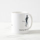 white mug with black writing and lemur image