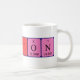 Ágoston spelled out as Ag O S T O N (Silver Oxygen Sulphur Tritium Oxygen Nitrogen) on a mug for the scientist in you.