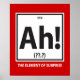 Ah! The element of surprise. A newly discovered element with the number 119 has been added to the periodic table. The atomic weight of this new element is unknown. Surprise! Red background.