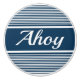 Ahoy text design with navy blue and white stripes decoration