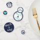 Classic navy and white Ahoy It's A Boy confetti that is meant to be customised with your due date with solid navy on one side and navy stripes on the other with touches of light teal