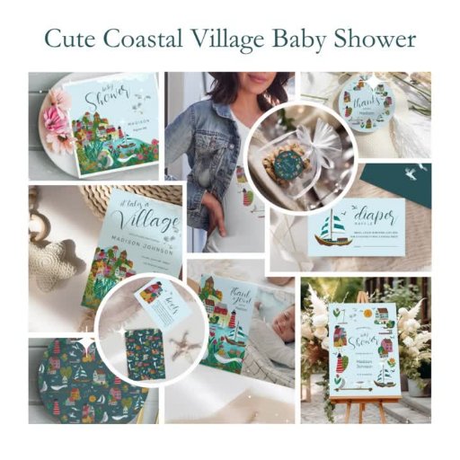 This adorable summer coastal village design features a seagulls and little sailing boats. Great for a boy baby shower with a "ahoy it's a boy" nautical theme. Font colours can be customised. You can move the seagulls and resize or remove them. Original artwork by Caroline Bonne Müller.