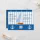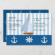 Ahoy, it's a boy! Having a baby shower for a boy. All in blue with this invitation card. Replace the information with your own. A sailboat, boat nautical anchors, and information on the front. The back of this flat card has an anchor pattern with a sepia-style background.