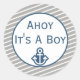 Perfectly preppy and chic customisable seersucker striped Ahoy It's A Boy with anchor sticker in navy and grey