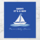 Celebrate the arrival of your little sailor with this chic nautical baby shower design. Featuring a minimalist sailboat floating on soft blue waves with the phrase “Ahoy! It’s a Boy,” this classic coastal aesthetic is perfect for nautical baby showers, seaside celebrations, or preppy maritime-inspired parties. The clean blue palette and timeless sailboat illustration create a polished look that pairs beautifully with coastal decor, sailboat themes, and ocean-inspired baby shower celebrations.