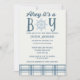 Ahoy! It's a Boy! Celebrate the arrival of a new baby in style with these nautical baby shower invitations. They feature the cute slogan "Ahoy it's a boy" , a soft blue and cream colour palette and plaid and nautical accents.