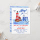 Ahoy it's a boy nautical marine baby shower invitation template with whale, lighthouse, seagull, ocean theme.