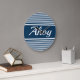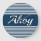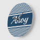 Ahoy text design with navy blue and white stripes decoration